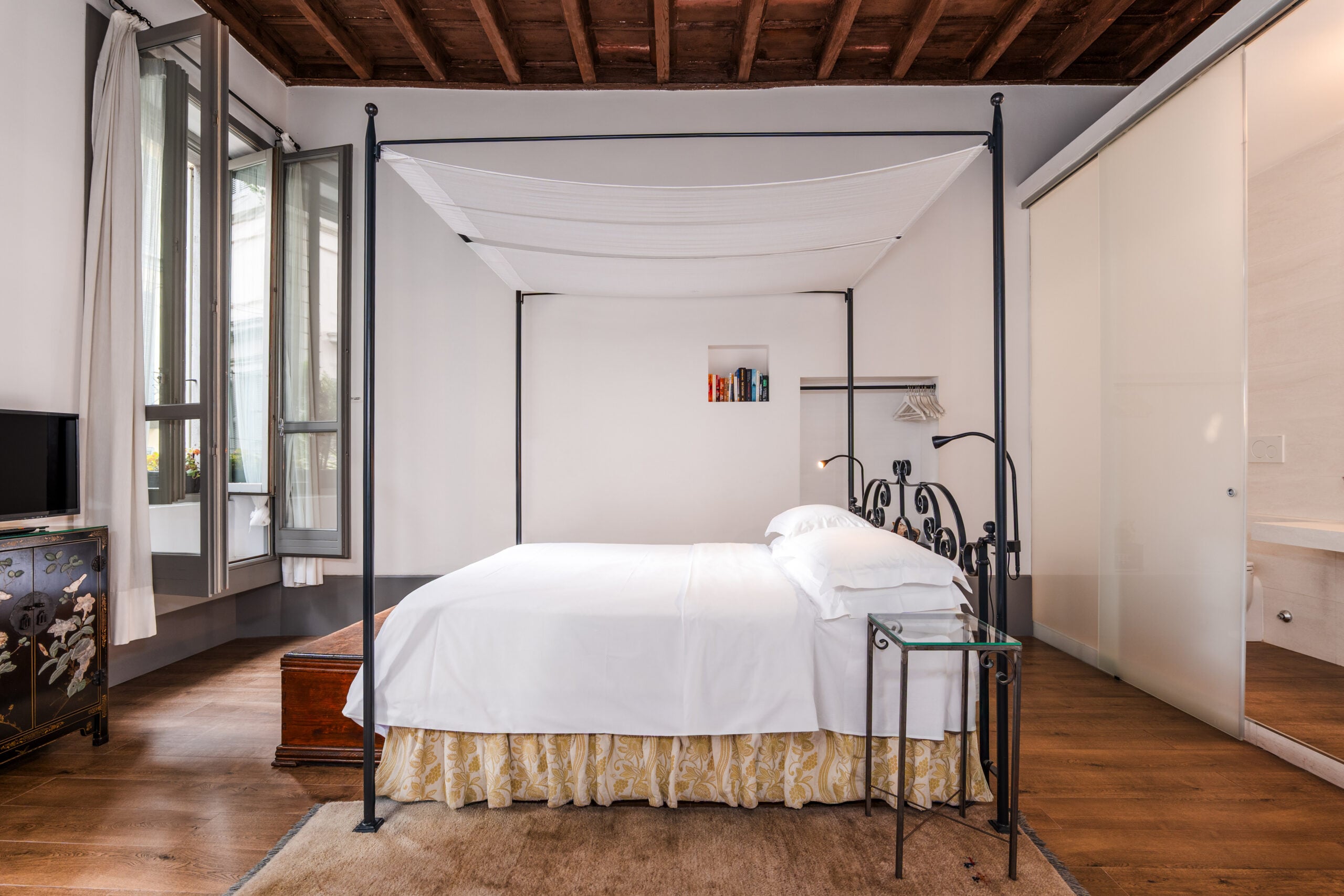 Ogni camera è curata nei minimi dettagli per garantire armonia e comfort. Scrivania, divano e una libreria non mancano mai. Gli arredi sono chiari, sobri ed eleganti.